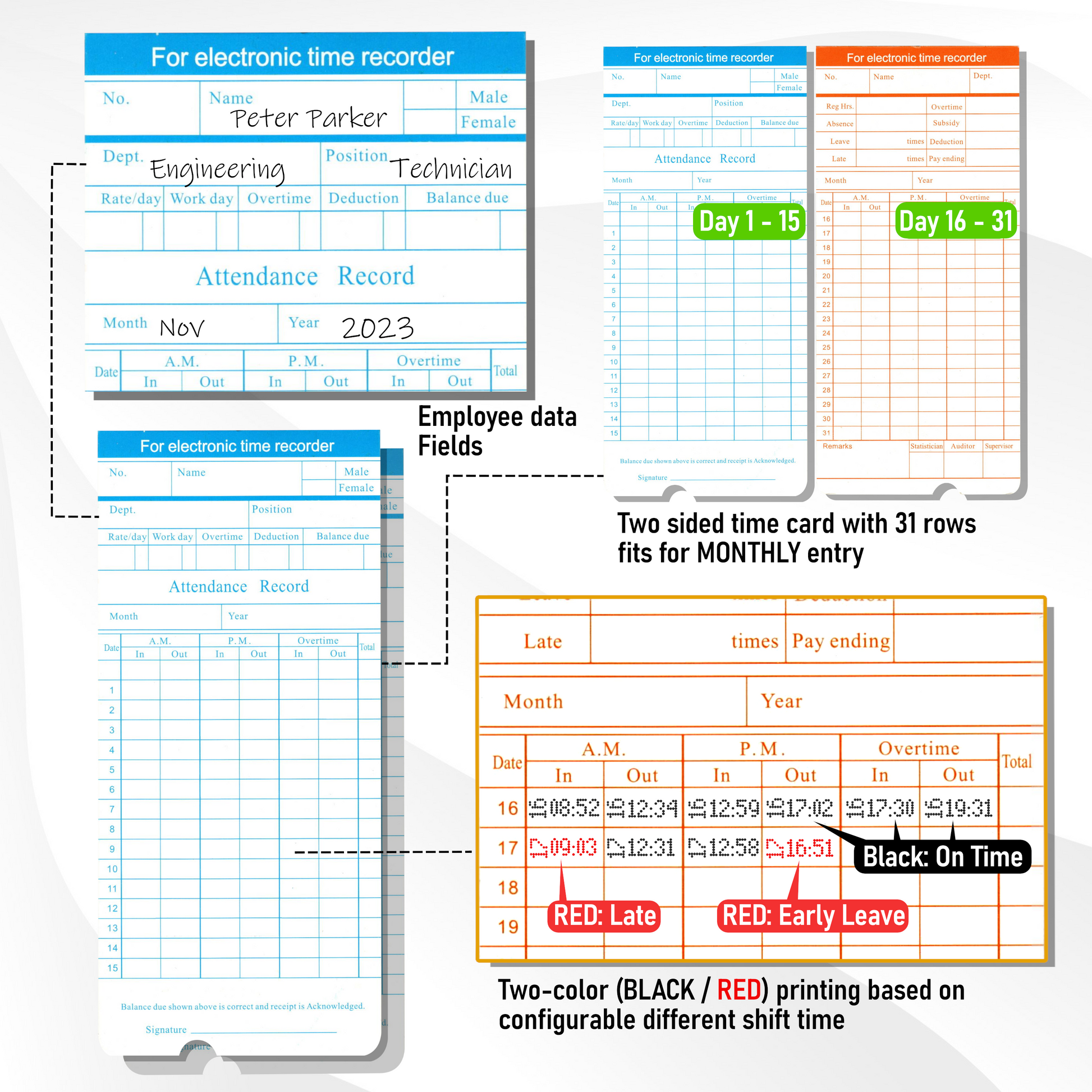 Description: The A960 Attendance Digital Time Recorder is a high-quality and versatile time card machine designed to meet the needs of small businesses. Beyond attendance tracking, this multi-functional device serves as a clock, alarm clock, mobile phone holder, and even a watch band, offering practical functionality for various aspects of your daily routine.