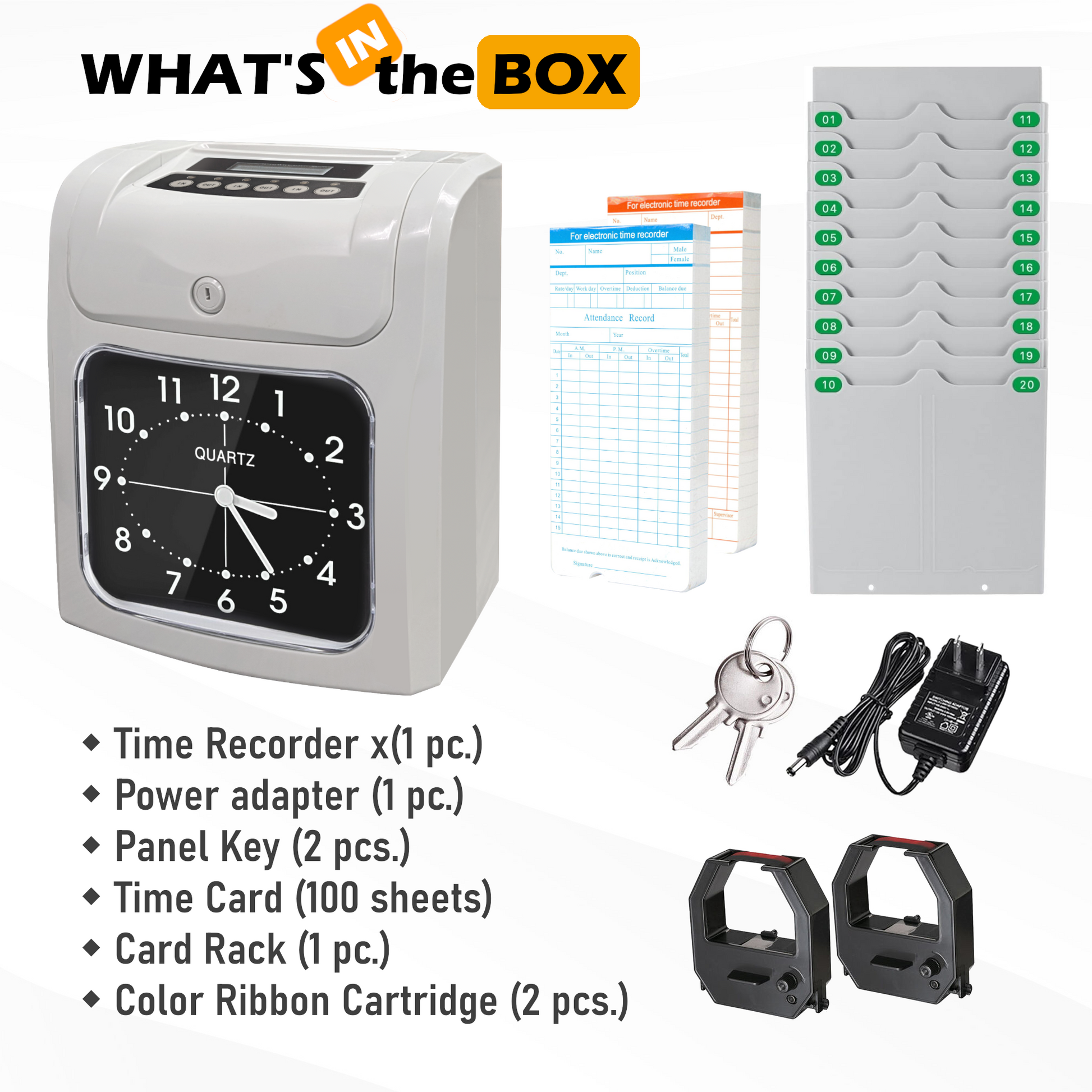 A960 - ASSUR Employee Punch Time Clock Bundle with 100 Punch Cards, 2 Ribbons, 1 Time Card Rack, 2Keys, Punch Tracker for Small Business Office Factory (Analog)